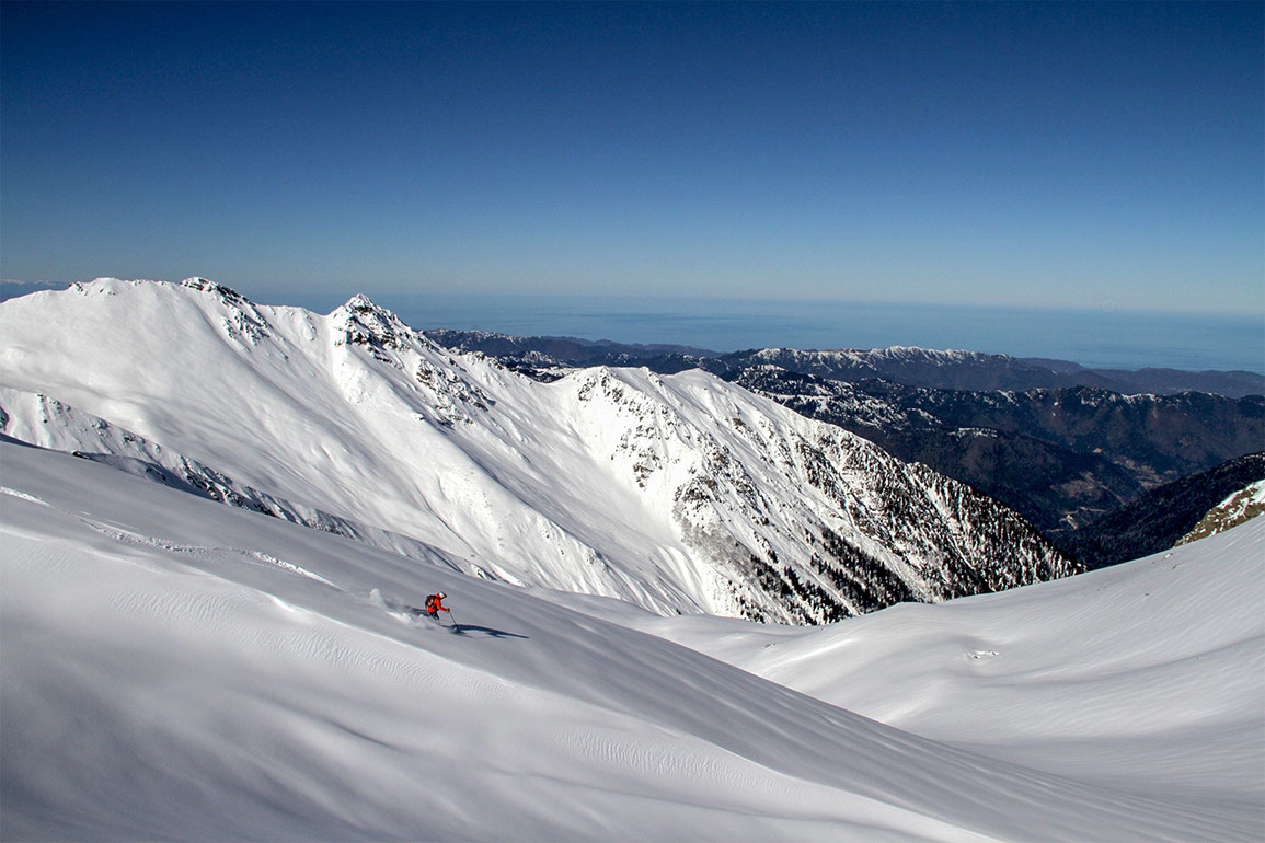 Close to the shores of the Black Sea, the Kackar range of east Anatolia rises 3935 meters above sea level and holds more than 3000 square kilometres of prime Heliski terrain. With an abundance of snow due to the maritime climate and vicinity of the sea, this destination has quickly become a favourite spot for powder skiers. Runs are perfectly stacked up and the variety of open slopes, couloirs and exposed lines are exciting to ski and board. The panoramic views of the Black Sea and the Caucasus are unforgettable.